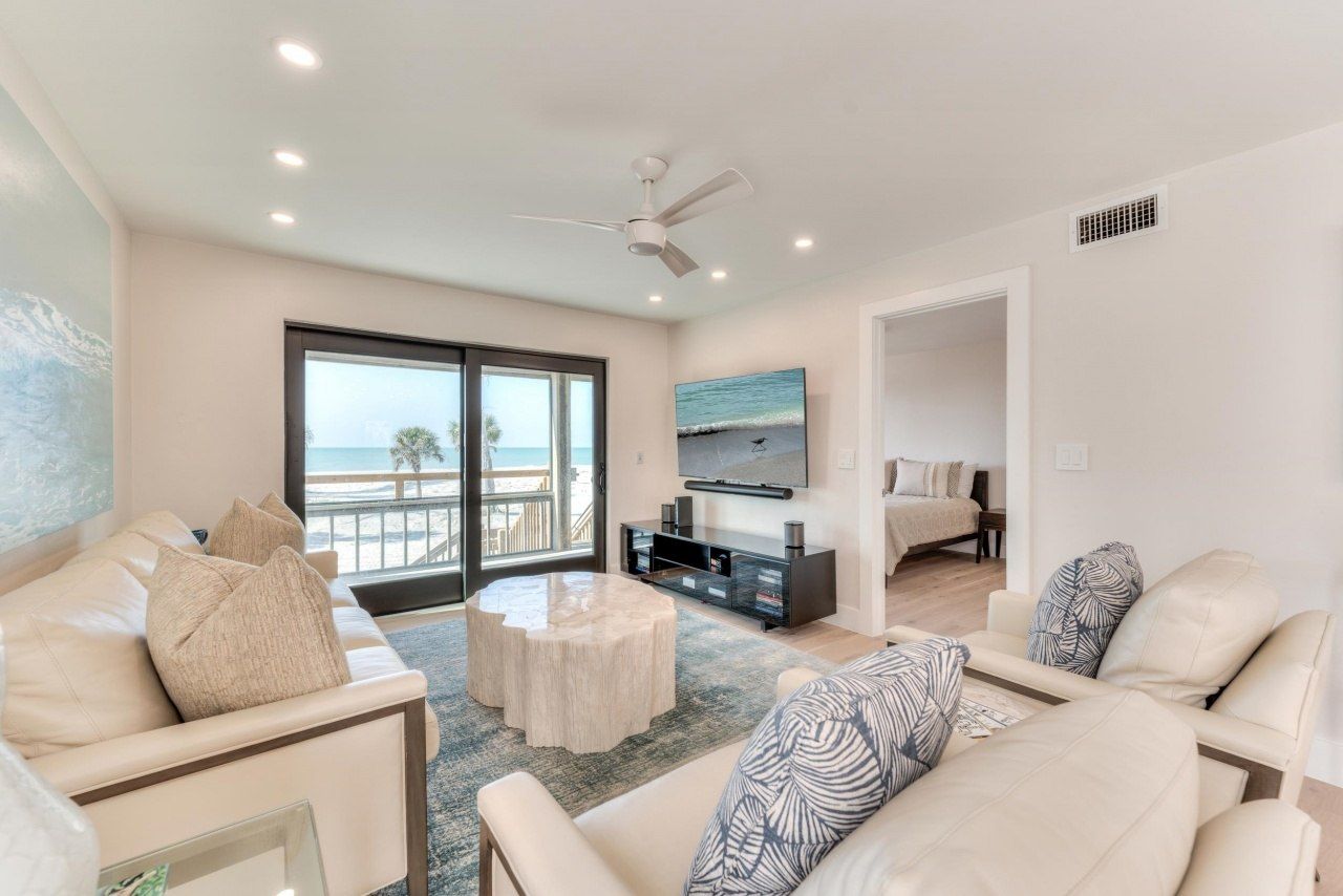 Just steps from toes in the sand!! Meticulously redesigned and completely renovated in 2020 by renowned island builder, Estate Management Construction, this exquisite 2-bedroom, 2-bathroom condo is a turn-key treasure offering unparalleled luxury within the gates of South Seas Resort. Every detail has been thoughtfully crafted to enhance both form and function. The reimagined floor plan maximizes space with an expanded kitchen featuring an extended quartz island, providing ample counter and stor...Just steps from toes in the sand!! Meticulously redesigned and completely renovated in 2020 by renowned island builder, Estate Management Construction, this exquisite 2-bedroom, 2-bathroom condo is a turn-key treasure offering unparalleled luxury within the gates of South Seas Resort. Every detail has been thoughtfully crafted to enhance both form and function. The reimagined floor plan maximizes space with an expanded kitchen featuring an extended quartz island, providing ample counter and storage space?perfect for entertaining or everyday living. Truly one-of-a-kind, this condo showcases white-oak engineered hardwood flooring, premium stainless steel KitchenAid appliances, impact-rated sliding glass doors, and elegant floor-to-ceiling tile in the walk-in showers. Coastal contemporary furnishings and hardwood shaker doors add to the refined yet relaxed aesthetic. This condo offers the ultimate island lifestyle with easy access to Captiva's renowned white sandy beaches, charming village shops, Starbucks, and local island dining eateries. Experience coastal living at its finest in this rare gem that blends luxury, comfort, and the essence of Captiva Island.