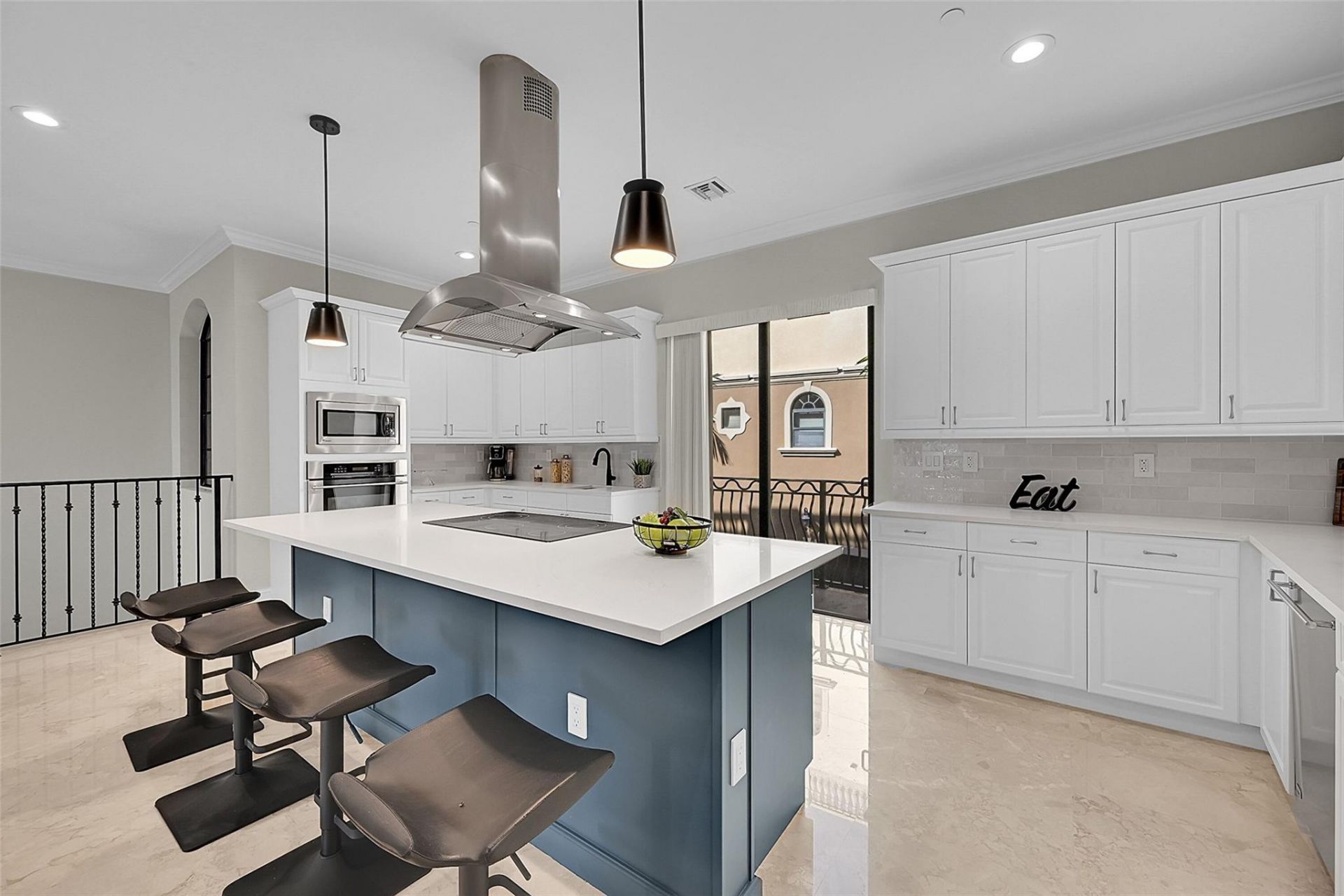 Stunning, recently updated, furnished 4-story luxury townhome with widewater views of Lake Santa Barbara, dock and assigned boat slip. Direct ocean access--no fixed bridges, minutes to Hillsboro Inlet. Private elevator to all levels, high ceilings, marble and hardwood floors. Gourmet kitchen with quartz countertops, GE Monogram appliances, oversized cook-top island. First floor includes a 2-car garage, foyer, half bath, large living area, office/exercise room/4th BR, walk-out kitchen overlookin...Stunning, recently updated, furnished 4-story luxury townhome with widewater views of Lake Santa Barbara, dock and assigned boat slip. Direct ocean access--no fixed bridges, minutes to Hillsboro Inlet. Private elevator to all levels, high ceilings, marble and hardwood floors. Gourmet kitchen with quartz countertops, GE Monogram appliances, oversized cook-top island. First floor includes a 2-car garage, foyer, half bath, large living area, office/exercise room/4th BR, walk-out kitchen overlooking the patio and dock. Second floor offers spacious kitchen, dining and living areas, laundry room/pantry, and half bath. Third floor hosts the primary suite with kitchenette, two bedrooms with walk-in closets and a large full bath. Expansive rooftop terrace provides amazing water/city vistas.