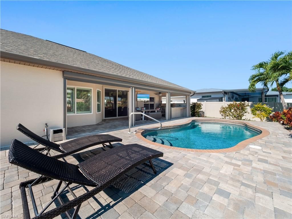 This TURNKEY SAILBOAT-ACCESS 3 BEDROOM + DEN HOME offers quick access to open water and has been extensively updated inside and out. Major improvements include a NEW ROOF (2022), NEW FENCE, HURRICANE-IMPACT WINDOWS, NEW FRONT DOOR, and FRESH INTERIOR AND EXTERIOR PAINT, providing added peace of mind.Designed for boating enthusiasts, the property features a NEW 16,000-LB BOAT LIFT (2023) WITH NEW CANOPY, making it easy to enjoy the Southwest Florida boating lifestyle.The bright, open interior inc...This TURNKEY SAILBOAT-ACCESS 3 BEDROOM + DEN HOME offers quick access to open water and has been extensively updated inside and out. Major improvements include a NEW ROOF (2022), NEW FENCE, HURRICANE-IMPACT WINDOWS, NEW FRONT DOOR, and FRESH INTERIOR AND EXTERIOR PAINT, providing added peace of mind.Designed for boating enthusiasts, the property features a NEW 16,000-LB BOAT LIFT (2023) WITH NEW CANOPY, making it easy to enjoy the Southwest Florida boating lifestyle.The bright, open interior includes WOOD-PLANK TILE FLOORING THROUGHOUT, CUSTOM PLANTATION SHUTTERS, and updated LIGHTING FIXTURES. The CHEF'S KITCHEN is well appointed with CUSTOM CABINETRY, an OVERSIZED SUB-ZERO REFRIGERATOR, INDUCTION COOKTOP, BUILT-IN STACKED MICROWAVE AND OVEN, and a WINE COOLER.All bathrooms have been RECENTLY REMODELED (EXCLUDING FLOORING). A SPACIOUS DEN, currently used as a fourth bedroom, provides flexibility as a home office or guest space.Outdoor living is a highlight of the home, featuring a RESORT-STYLE POOL, LUSH TROPICAL LANDSCAPING, and EXTENSIVE OUTDOOR LIGHTING & BLUETOOTH SPEAKERS in the tiki hut and lanai. A PAVED WALKWAY leads to the RE-THATCHED TIKI HUT, complete with NEW CEILING FAN, ELECTRIC, WATER.Additional features include a CUSTOM OUTDOOR KITCHEN with GRANITE COUNTERTOPS, ALFRESCO GRILL, MINI REFRIGERATOR, and STAND-ALONE ICE MAKER, along with ELECTRIC ROLL-DOWN HURRICANE SCREENS. Conveniently located near BEACHES, RESTAURANTS, AND SHOPPING, this IMMACULATELY MAINTAINED, MOVE-IN-READY HOME offers the ideal Florida lifestyle.