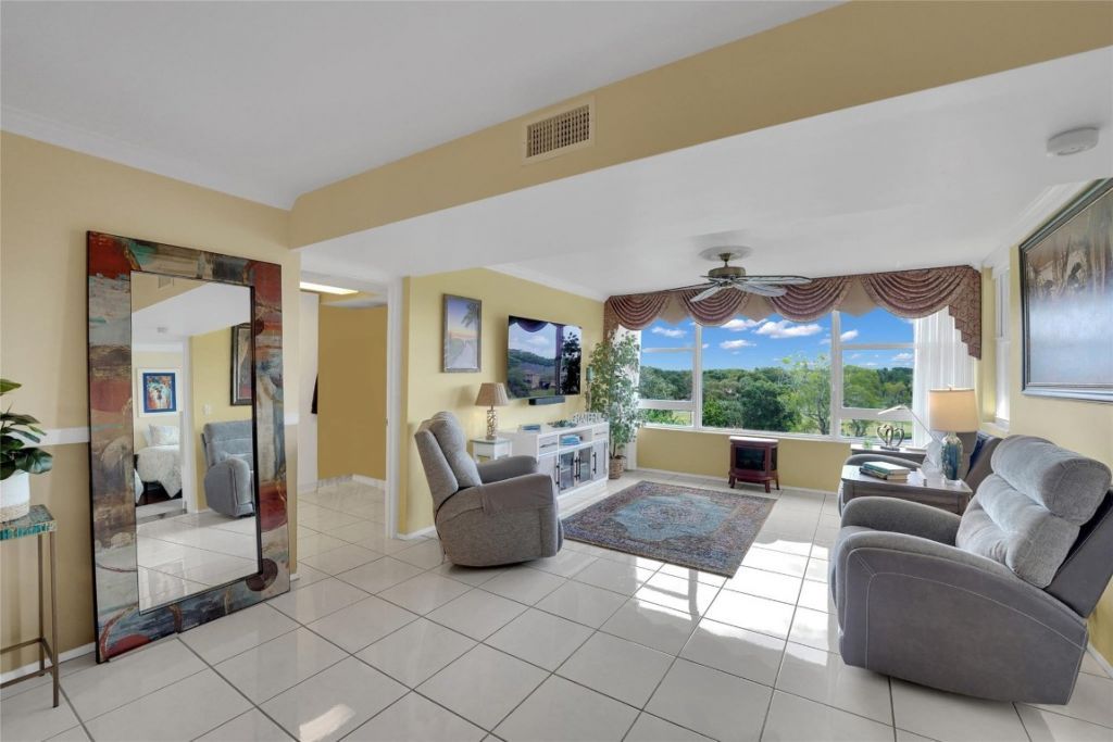 Stunning Cypress Reach 2BR/2BA plus bonus room offers nearly 1,400 sq. ft. with sweeping golf course and water views. This 5th-floor, top-floor Palm Aire residence has no neighbors above and only one next door. Open layout features white tile in main living areas and kitchen with granite countertops & pass-through bar seating. Impact glass windows thru-out. Highlights include crown molding, chair rail, plantation shutters & wood flooring in bedrooms. Bonus room/office with built-ins and lake vie...Stunning Cypress Reach 2BR/2BA plus bonus room offers nearly 1,400 sq. ft. with sweeping golf course and water views. This 5th-floor, top-floor Palm Aire residence has no neighbors above and only one next door. Open layout features white tile in main living areas and kitchen with granite countertops & pass-through bar seating. Impact glass windows thru-out. Highlights include crown molding, chair rail, plantation shutters & wood flooring in bedrooms. Bonus room/office with built-ins and lake view. Primary suite offers renovated shower and California walk-in closet; guest bedroom includes custom built-ins and California closet. HVAC 2023 with UV light system. Secure gated community with pool and clubhouse. Minutes to Publix, Skolnik Center, and Brummer Park with tennis pickleball and more.