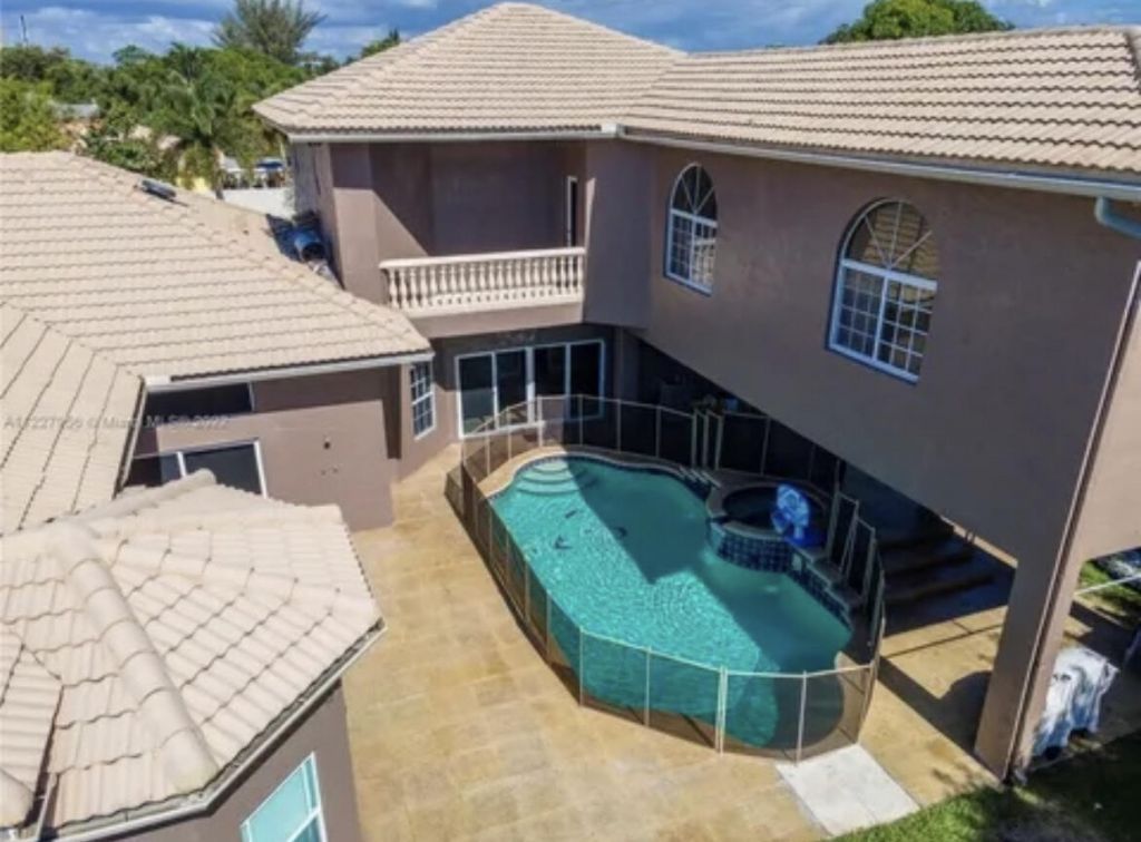 Welcome to this stunning luxury home! This home offers 5 spacious bedrooms and 4 tastefully designed bathrooms. Step inside to find luxurious marble floors that flow seamlessly throughout. The custom kitchen is a chef's dream, featuring granite countertops, stainless steel appliances and a stainless steel sink with a convenient bar area. For your entertainment needs, the home has a luxurious movie theater with signature reclining seating and a large movie screen. The impact glass windows provide...Welcome to this stunning luxury home! This home offers 5 spacious bedrooms and 4 tastefully designed bathrooms. Step inside to find luxurious marble floors that flow seamlessly throughout. The custom kitchen is a chef's dream, featuring granite countertops, stainless steel appliances and a stainless steel sink with a convenient bar area. For your entertainment needs, the home has a luxurious movie theater with signature reclining seating and a large movie screen. The impact glass windows provide both comfort and security. Step out into the backyard and be greeted by an inviting pool with a heated spa, perfect for relaxing or hosting gatherings. Enjoy the ultimate outdoor experience with a full Basketball court. The home also has a double car garage, and plenty of room for more parking.