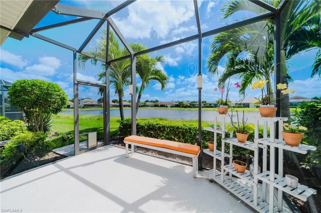 Florida living in this LAKEFRONT VILLA at Watermark, one of Fort Myers' premier gated communities. This upgraded home stands apart-loaded to the heavens with designer features and thoughtful enhancements not found in any other villa. Offering 2 bedrooms + den/office, 2 full baths, and a 2-car garage, this modern, open-concept floor plan showcases soaring volume ceilings, abundant natural light, and elegant tile flooring set on the diagonal. The chef's kitchen features a gas cooktop, upgraded bac...Florida living in this LAKEFRONT VILLA at Watermark, one of Fort Myers' premier gated communities. This upgraded home stands apart-loaded to the heavens with designer features and thoughtful enhancements not found in any other villa. Offering 2 bedrooms + den/office, 2 full baths, and a 2-car garage, this modern, open-concept floor plan showcases soaring volume ceilings, abundant natural light, and elegant tile flooring set on the diagonal. The chef's kitchen features a gas cooktop, upgraded backsplash, LED upper-cabinet lighting, pendant-lit center island, and a custom walk-in pantry with glass door and built-in lighting. Sophisticated details include crown molding, a coffered ceilings in the living room with a matching feature wall in the dining and upgraded fans and lighting throughout. The spacious living room offers lake views, plantation shutters, sconce accent lighting, and direct access to the expanded screened lanai-complete with motorized hurricane screens, ambient lighting, and extended paver decking. Perfect for morning coffee or evening cocktails by the water, this space seamlessly extends your indoor living outdoors. The primary suite is a retreat of its own, featuring tranquil lake views, a luxurious bath with dual vanities, a frameless glass walk-in shower, and a custom closet system with premium cabinetry. The guest suite includes a Murphy bed, ideal for flexible use or hosting guests, while the den easily converts to a third bedroom. The garage is fully outfitted with built-in storage, workbenches, and a decked attic for additional storage capacity. Tons of storage with no wasted negative space. Peace of mind comes with hurricane-impact windows and rear storm screens, while the upgraded landscaping, decorative fountain with lighting, and custom glass front entry add unmatched curb appeal. At Watermark residents enjoy resort-style amenities including a heated 71,000-gallon pool and spa, modern fitness center, tennis and pickleball courts, bocce ball, basketball, dog park, and scenic walking paths. The clubhouse features a stylish community room, BBQ grills, and social spaces. With low HOA fees, no CDD, and exterior maintenance (sidewalk, driveway and cleaning) handled by the community, living here is effortless. Conveniently located minutes from I-75, RSW International Airport, shopping, dining, healthcare, and the Gulf beaches, Watermark offers the perfect blend of comfort, convenience, and lifestyle. Area Growth Advantage: Just down the road, the new Lee Health Fort Myers Hospital (under construction at Colonial Blvd. & Challenger Blvd.) is set to elevate the area with world-class healthcare, professional employment opportunities, and long-term property value appreciation-further enhancing Watermark's appeal. This lakefront villa represents one of the best values with all of the upgrades, hurricane-ready, and lake view. Experience luxury, lifestyle, and location-all in one extraordinary home.